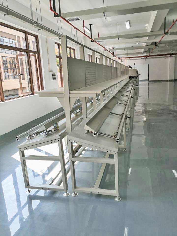 采用動力牽引,工裝板可自由傳送,阻擋定位。 在大批量生產中,采用自動線,能顯著提高生產效率。 工作臺(工作站)之間無縫連接,可自由安排間距形成緩沖區域。 根據生產工藝不同或產品不同,可選擇倍速鏈、輥筒線、鏈條鏈板、皮帶同步帶等不同的輸送方式。
