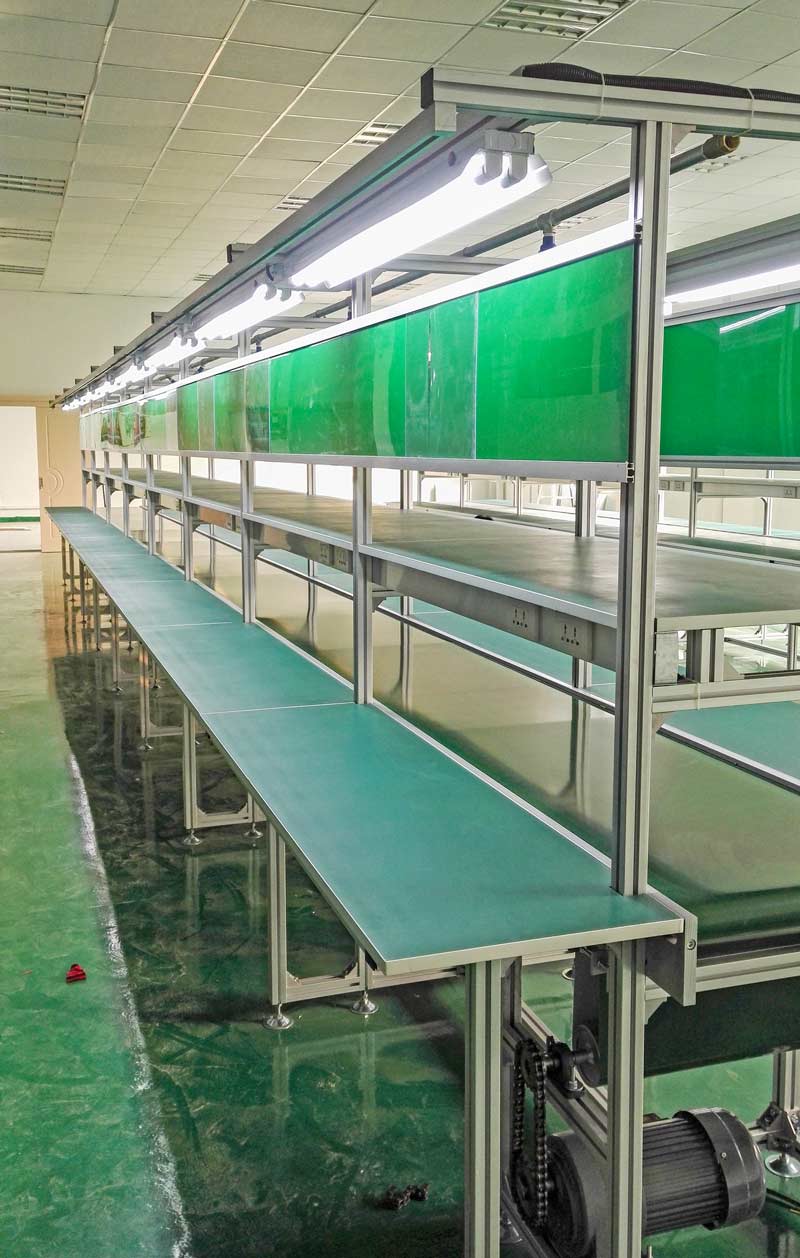 以皮帶為輸送材料的工業(yè)流水線,皮帶輸送線在電子產(chǎn)品裝配行業(yè)應(yīng)用的最為廣泛,可以滿足生產(chǎn)車間的防靜電需求。在生產(chǎn)中,具有運(yùn)行平穩(wěn)的特點(diǎn)